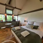 Gæsterne vil nyde haven udsigt fra værelset. Badeværelset indeholder en bruser, badelagner og håndklæder.